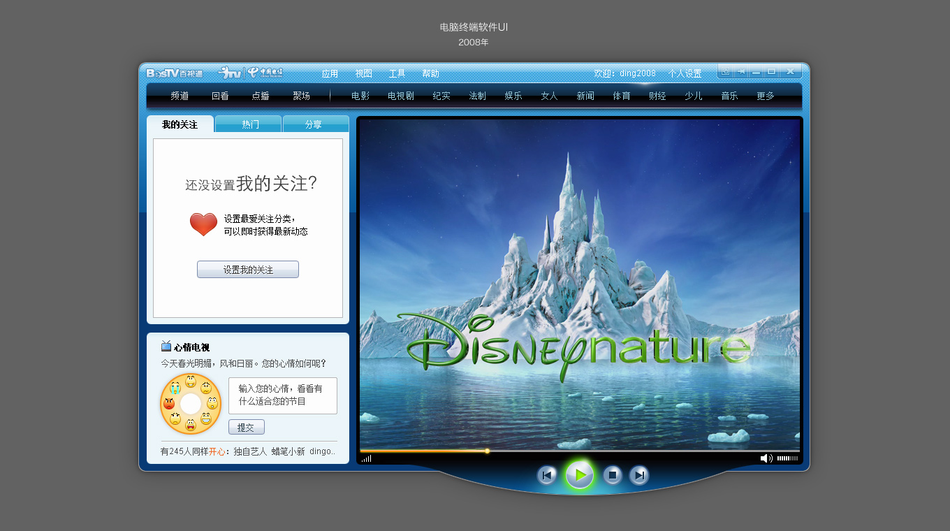 丽网传播为BesTV百视通公司提供界面设计,侧重于界面、交互、流程的设计,协助百视通的在线端社区应用进行探索。