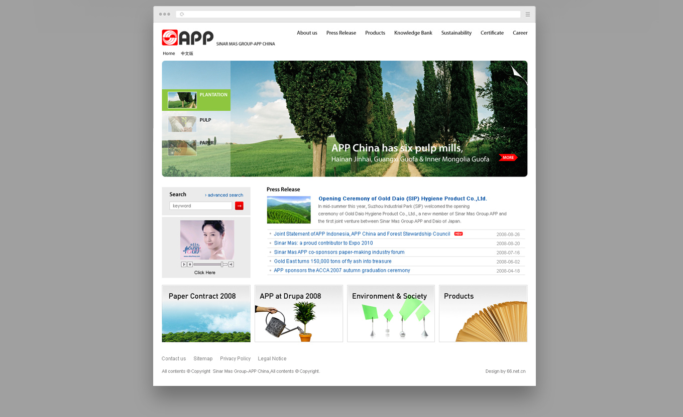 由丽网传播公司为金光集团打造的全新官方网站,体现出其倡导的人文、环保精神,于2009年11月6日正式发布上线。