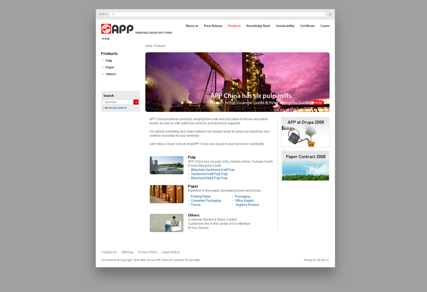 经过30年的努力,如今APP已成长为世界纸业十强之一,旗下金东纸业为中国最大的造纸企业,也是世界最大的单一铜版纸生产厂。目前,从工业、文化、生活用纸,到纸制品,再到纸浆,APP的产品几乎涵盖了所有的浆纸领域。