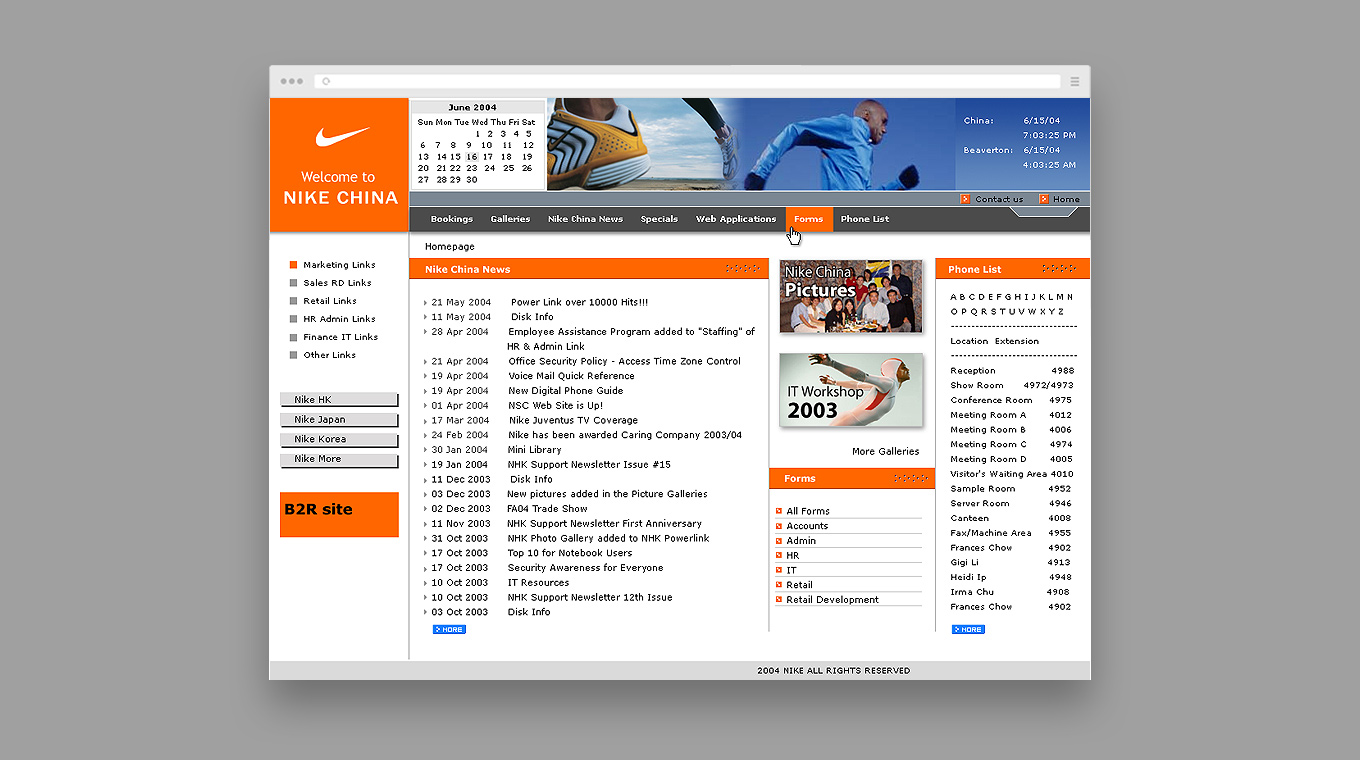 丽网传播以活力橙为主色调,遵循耐克时尚、运动、简约的风格,结合内部网站的通讯功能,设计出一套方便使用又凸显其个性的界面。